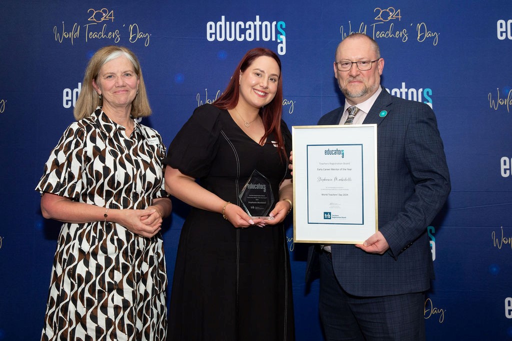 In 2024 the Teachers Registration Board Early Career Mentor of the Year Award was presented to Stephanie Morbidelli (HAA Vice-President)